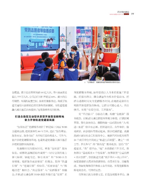 行刚需、专属的流量空间、独有的集散效应,构成了轨 群众通勤时间变为党群服务时间,在地铁运营所有
