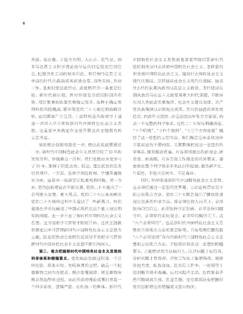 进一步深入学习贯彻新时代中国特色社会主义思 成一个完整的科学体系。党的二十大报告明确指出,