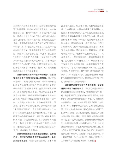 新时代统计工作的根本要求。全面贯彻新发展理 升四川统计工作的影响力。 习近平总书记在第四届