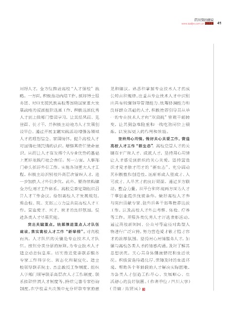 系挂职借调人才制度等。持续完善专家咨询 活舒心的良好氛围。(作者单位 / 四川大学)