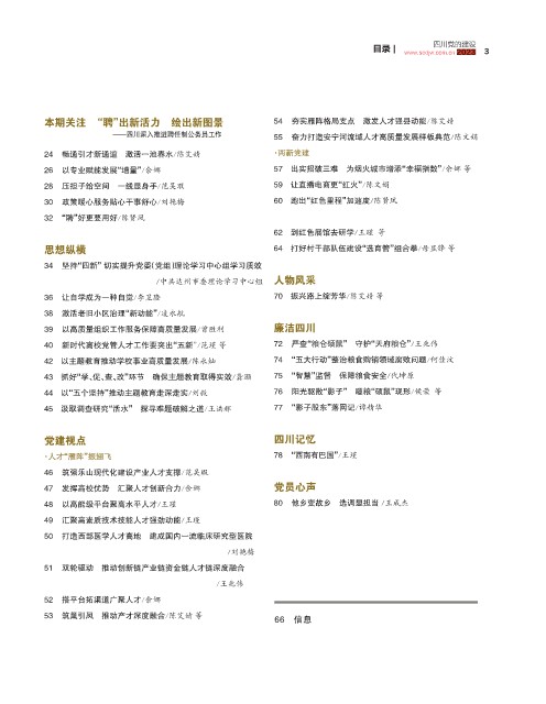 40 新时代高校党管人才工作要突出“五新”/范瑾 等 72 严查“粮仓硕鼠” 守护“天府粮仓”/王兆伟