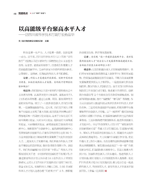 一动力。近年来,四川省科学技术厅(以下简称“省科 记者 : 为实现“进一步建强高能级平台、更好集