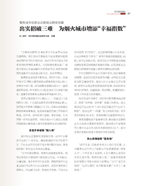 市,成都市拥有新业态新就业群体超 60 万人。 党建工作穿透力显著增强。