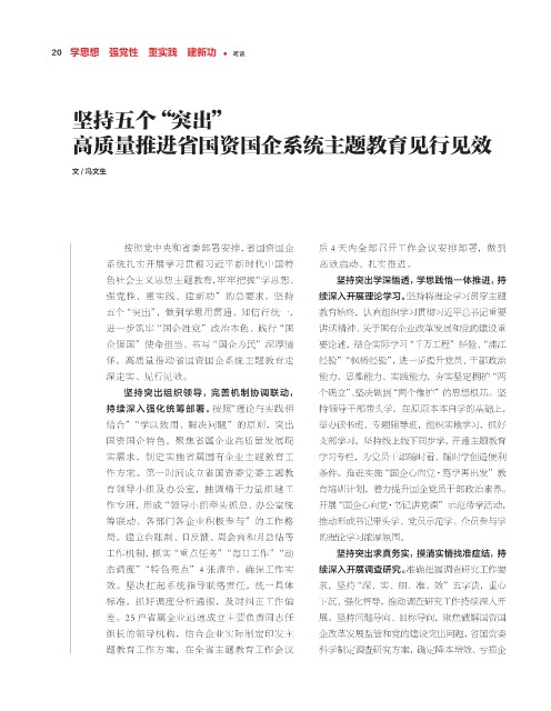 国资国企 特色,聚焦省属企业高质量发展现 支部学习。坚持线上线下同步学,开通主题教育