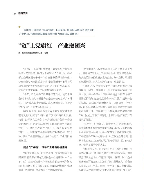 2022 年以来,彭山经开区党工委聚焦党建引领 到彭山经开区,这得益于产业链党委的桥梁和纽带