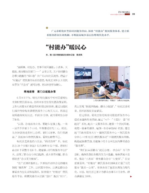事需求为出发点和落脚点,探索建立‘村能办’便民 化。目前,昭化区已累计为群众办事 5.4 万余件,群