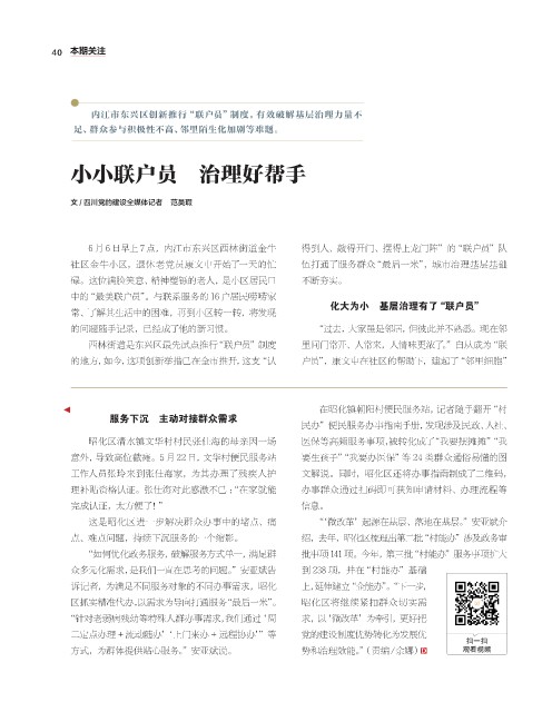 6 月 6 日早上 7 点,内江市东兴区西林街道金牛 得到人、敲得开门、摆得上龙门阵”的“联户员”队