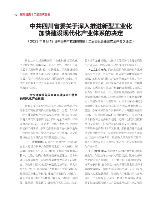 (2023 年 6 月 19 日中国共产党四川省第十二届委员会第三次全体会议通过)