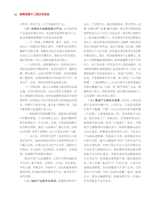 大医养、医美产业。大力发展体育产业。 业化、产业数字化,建设网络强省、数字四川。抢