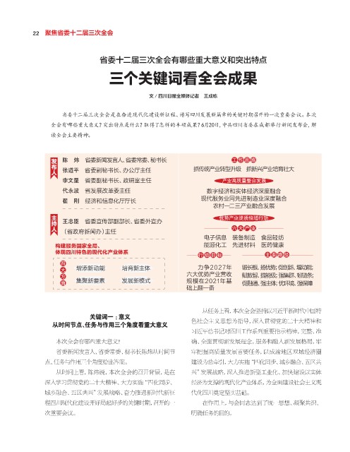 省委十二届三次全会是在奋进现代化建设新征程、谱写四川发展新篇章的关键时期召开的一次重要会议。本次