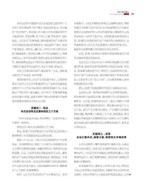 融合、五区共兴”发展战略,把构建现代化产业体系作 局、体现四川特色的现代化产业体系作出战略谋划。这
