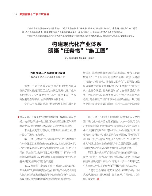 省委十二届三次全会审议通过的《中共四川省 设以实体经济为支撑的现代化产业体系要“坚持三