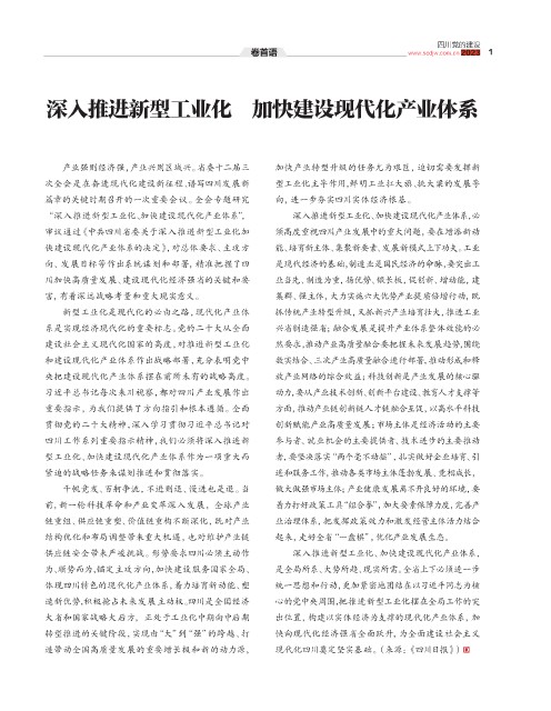 供应链安全带来严峻挑战。形势要求四川必须主动作 深入推进新型工业化、加快建设现代化产业体系,