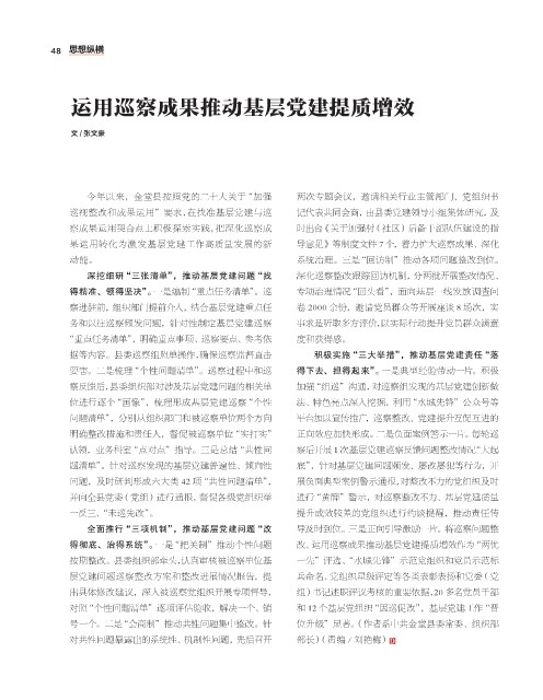 得彻底、治得系统”。 一是“把关制”推动个性问题 改、运用巡察成果推动基层党建提质增效作为“两优