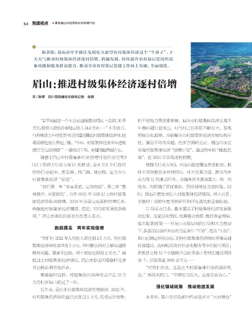 54 党建视点 ● 聚焦眉山村级集体经济倍增计划