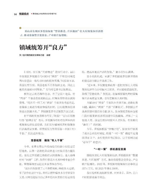 56 党建视点 ● 聚焦眉山村级集体经济倍增计划