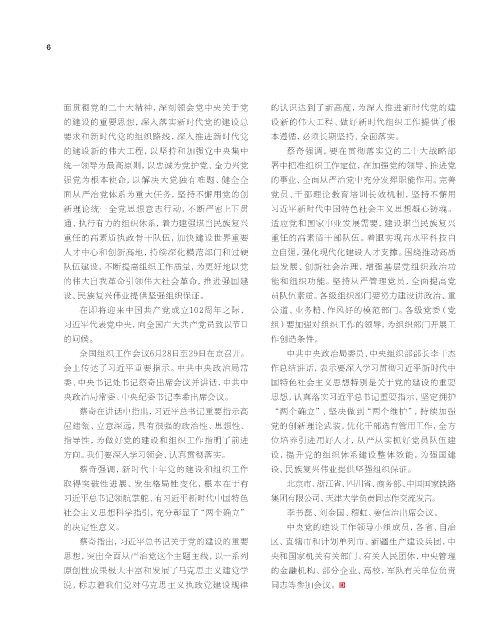 蔡奇 强调,新 时代十年党的建 设和组织工作 设、民族复兴伟业提供坚强组织保证。