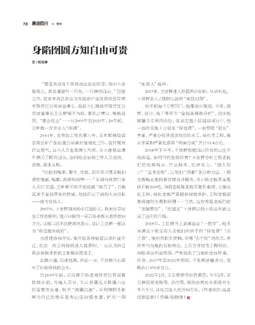 像现在,羡慕着窗外一只鸟、一只蝉的自由。”囹圄 2017年,王世辉进入县属国企任职。从那时起,