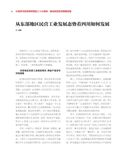 从东部地区民营工业发展态势看四川如何发展