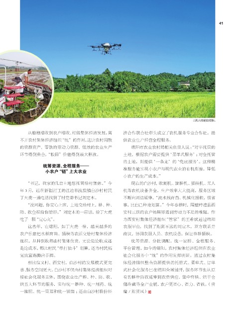 不开农村集体经济组织“统”的作用,这让农村闲散 供农业生产经营全程服务。
