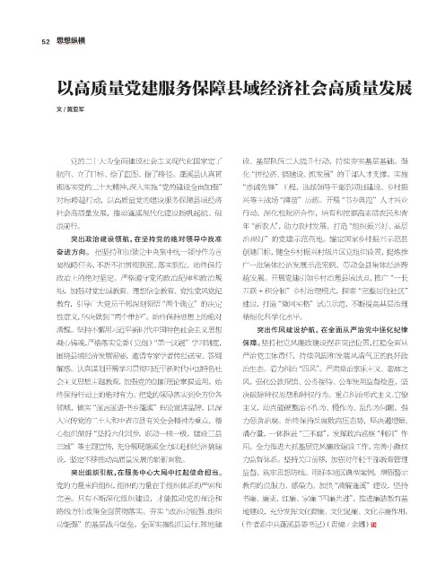 政治上的绝对坚定。严格遵守党的政治纪律和政治规 越发展。开展党建引领乡村治理县域试点,推广“一长