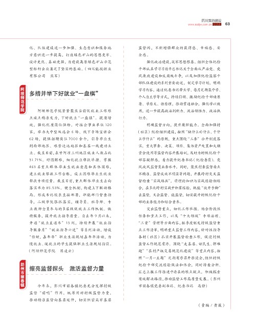 开通“就业直通车”13 列,持续开展“就业指 “三资”管理等方面内容,按季度制发村级监督重
