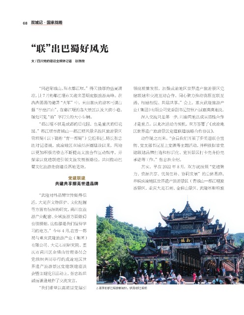 “问道青城山,拜水都江堰。”得天独厚的盛夏清 领高质量发展,加强成渝地区世界遗产旅游景区党