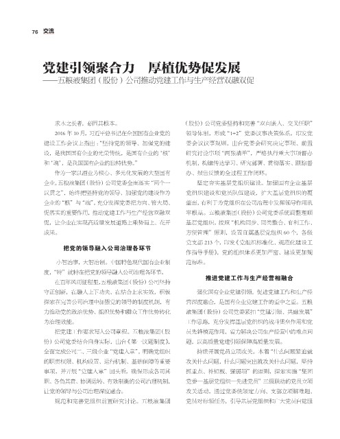 探索在完善公司治理中加强党的领导的制度机制,有 营深度融合,是国有企业党建工作的重中之重。五粮
