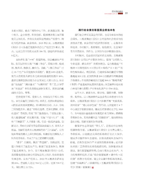 化为经济效益、社会效益。2015 年以来,五粮液集团 济效益并重,社会责任与经济责任相统一,在服务实