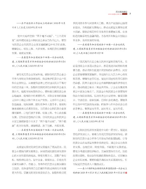 发展。要加强思想政治引领,引导民营企业和民营企 建、工商联界委员并参加联组会时的讲话(2023年3月6