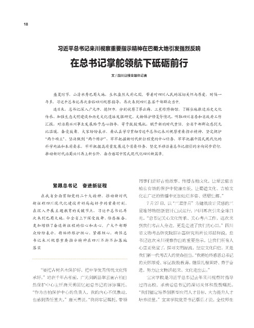 次来到巴蜀大地,令全省上下深受鼓舞、倍感振奋, 光。“总书记关心文化传承、关心考古工作,这次来
