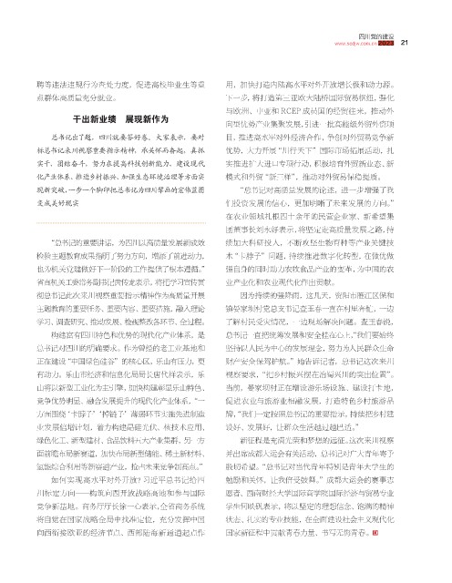 总书记出了题,四川就要答好卷。大家表示,要对 目,推进高水平对外经济合作,争创对外贸易竞争新