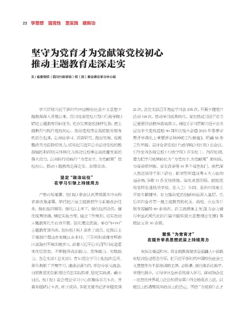 强大动力,以实际行动践行“为党育才、为党献策”党 着力把学习成果转化为“为党育才、为党献策”的实践。