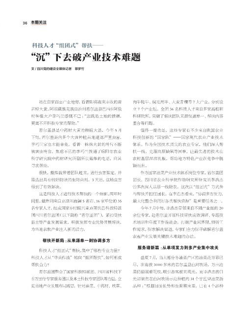 古特大黄,阿坝藏族羌族自治州若尔盖县巴西乡阿俄 立 7 个产业组。全团 36 名科技人才来自多家高校和