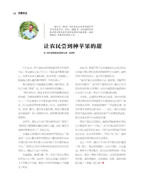 7月 26 日,四川省农业科学院园艺研究所党委 2022 年,熟悉苹果产业发展的谢红江成为国家