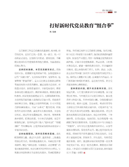 党员教育讲师库,充分发挥不同讲师的专业特长,实 进取。(作者系中共德阳市罗江区委常委、组织部部