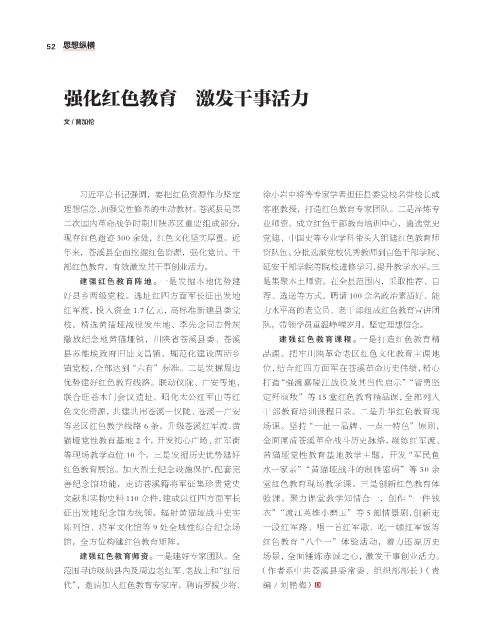 建强 红色教 育阵 地。一是 发掘本地优势建 是集聚本土师资。在全县范围内,采取推荐、自