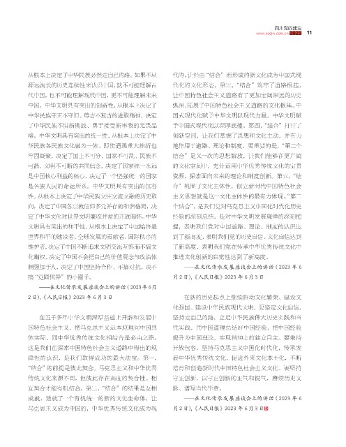 源远流长的历史连续性来认识中国,就不可能理解古 代化的文化形态。第三,“结合”筑牢了道路根基,