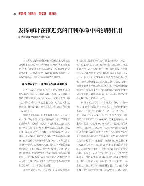 规定动作,又创新体现审计特色;既突出问题导向,又 式现代化征程中谱写审计事业新篇章》为题,为全