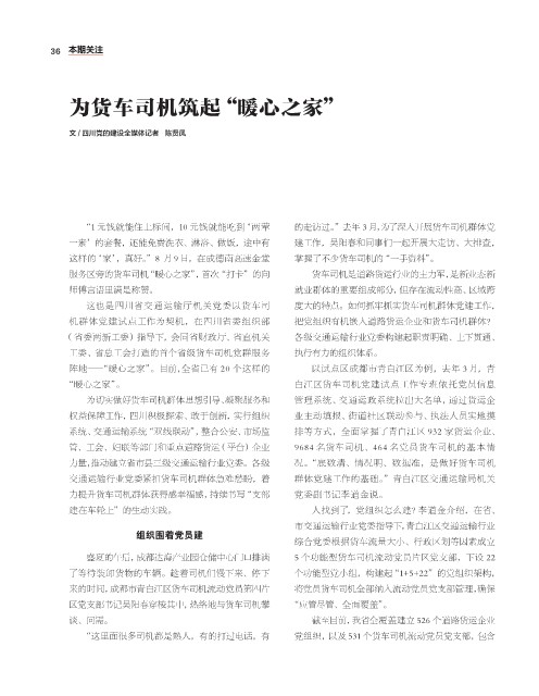 交通运输行业党委紧扣货车司机群体急难愁盼,着 群体党建工作的基础。”青白江区交通运输局机关