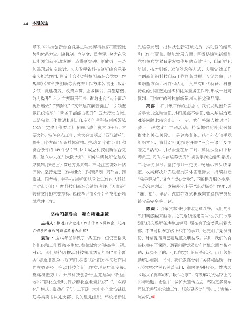 导下,省科技创新综合党委主动发挥科技部门资源优 先培养发展一批科技创新领域党员,推动党的组织