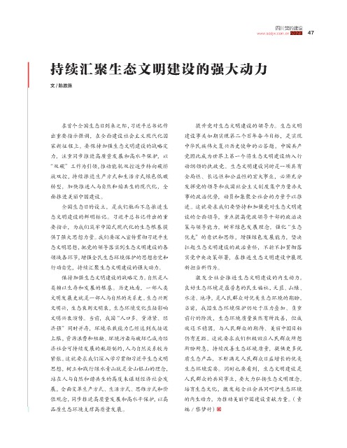 力,注重同步推进高质量发展和高水平保护,以 党因此成为世界上第一个将生态文明建设纳入行