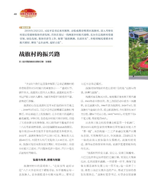 引领、绿色发展、集体经济等工作,称赞“战旗飘飘,名副其实”,并殷切嘱托要把乡村
