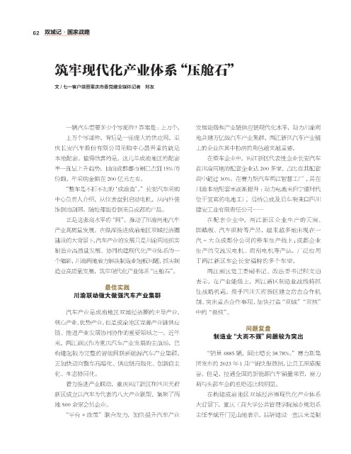 汽车产业是成渝地区双城经济圈的主导产业、 中的“极核”。