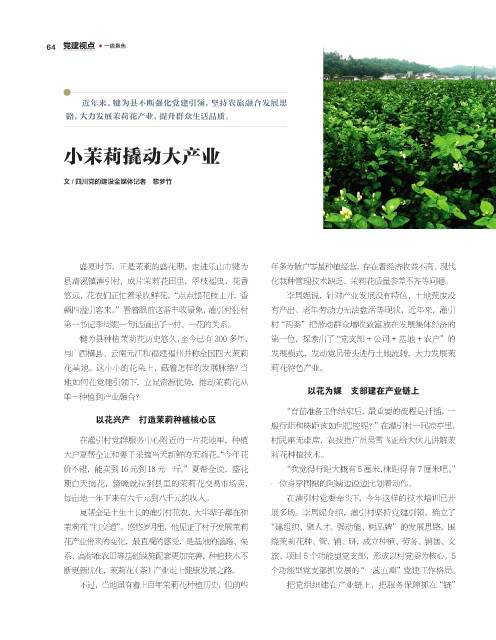 犍为县种植茉莉花历史悠久,至今已有 300 多年, 第一位,探索出了“党支部 + 公司 + 基地 + 农户”的