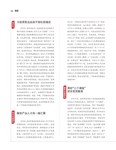 要素向乡村产业一线集聚。组建乡村振兴人才发展 分队,广泛开展基层宣讲活动 ;结合七一、春节