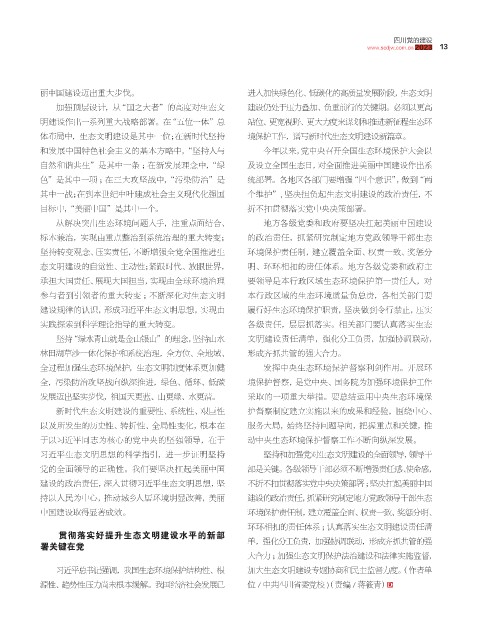 体布局中,生态文明建设是其中一位;在新时代坚持 境保护工作,谱写新时代生态文明建设新篇章。
