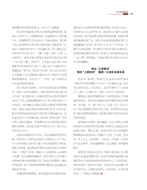 湖优秀案例。在国家 2022 年考核试点中,四川水生 好流域生态保护和环境治理。改善长江流域生态环