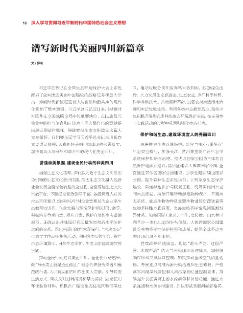 对四川在全国战略全局中的重要地位、在民族复兴 生积极开展形式多样的生态环境保护实践,在亲身参