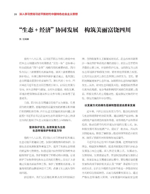 “生态 + 经济”协同发展 构筑美丽富饶四川